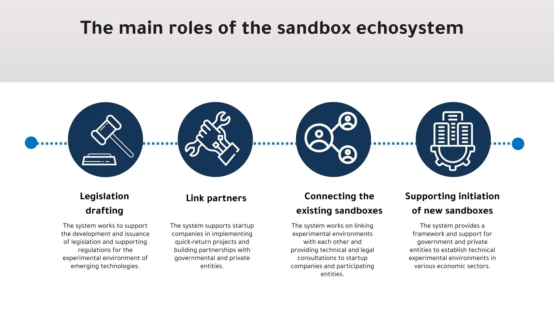 It is a project aimed at building a comprehensive ecosystem for sandboxes in the Sultanate of Oman, with the goal of stimulating innovation and encouraging companies to develop new applications and products to create economically viable sector-specific solutions.